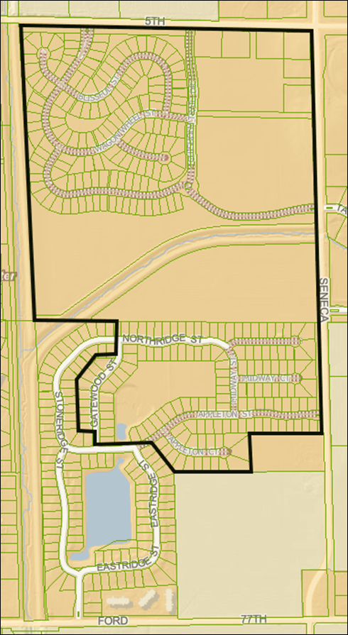 The Prairie Lakes/Trails End TIF District was created in 2021 (see map below showing the TIF district boundaries outlined in black). While single-family homes built within the TIF district are not eligible for the City’s Housing Incentive Program, they are eligible for an alternative program called the Special Assessments Rebate Program. This program is designated for individuals that buy new single-family homes in the TIF district and, upon approval, will provide a special assessments rebate in an amount equal to the lesser of (i) $1,200 or (ii) the total amount of special assessments paid, other than special assessments levied for Regional Detention Basin work (if any) for a period of three (3) years. The application can be found on the left hand toolbar of this webpage. In order to qualify for this program, an applicant must meet the following requirements: