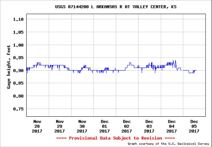 Here is a link to the USGS Stream Gauge at the Little Arkansas River located on the Main Street bridge, west of downtown Valley Center.